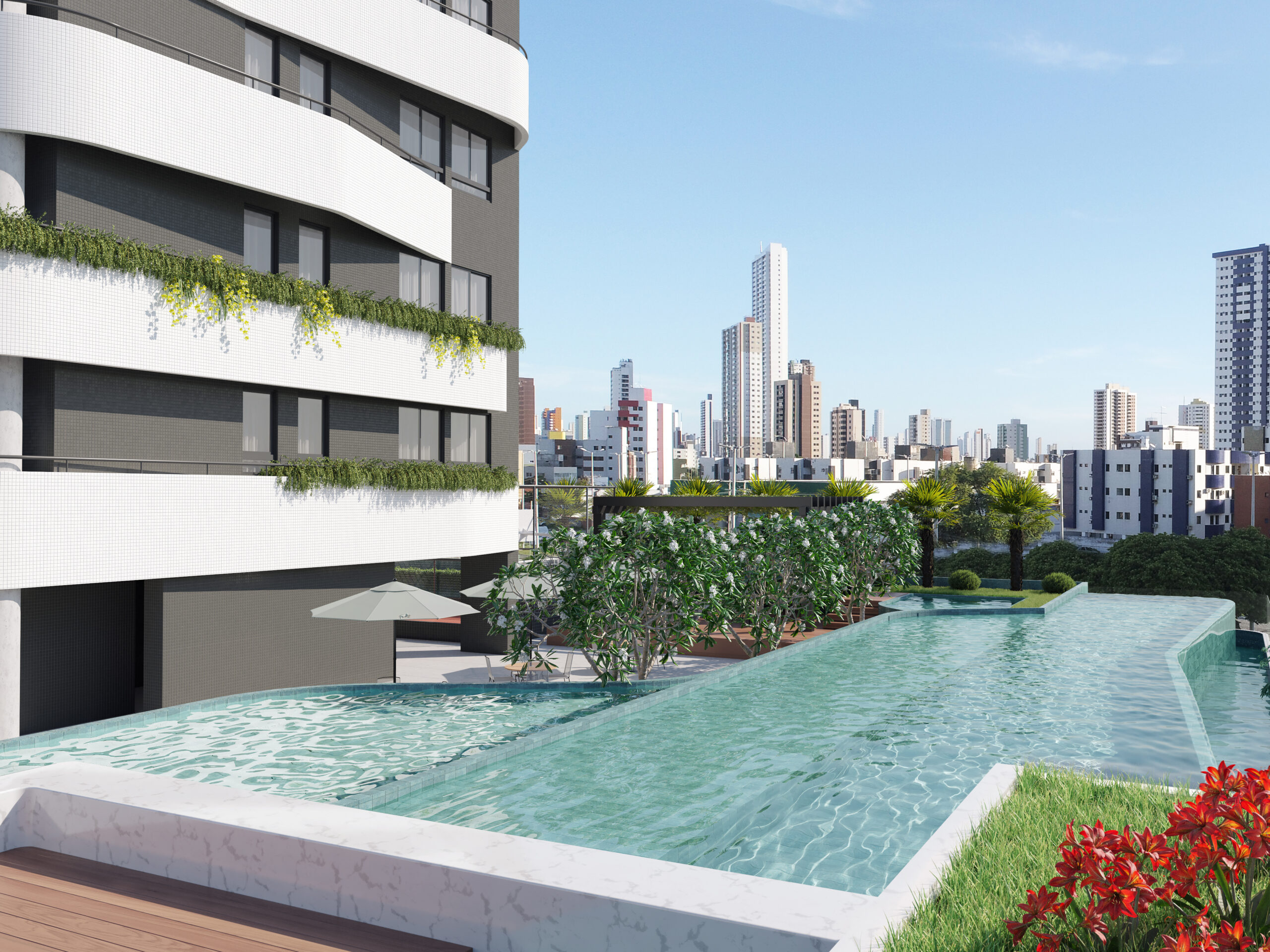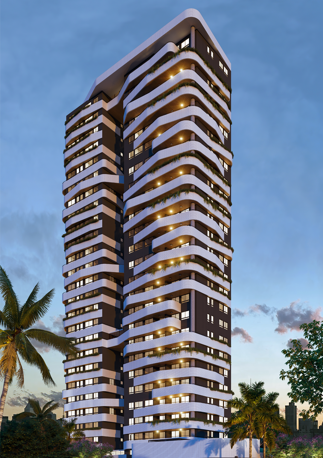 Seu desenho traz composição com linhas sinuosas rompendo a rigidez dos traços retos, tornando o projeto mais fluido e orgânico. Oseu aspecto arredondado e irregural dão dinamismo á fachada e revelam diferentes formas dependendo do ângulo observado. A implantação se caracteriza pela abertura do lote para a cidade garantindo maior integração da edificação com o ambiente urbano, buscando sempre o respeito e diálogo com entorno edificado.